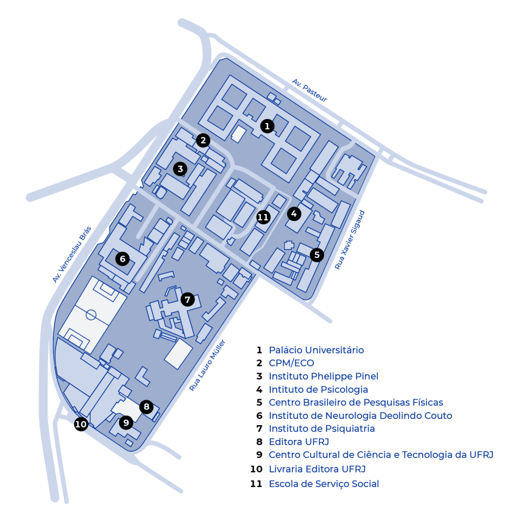 Dirección completa: Campus Praia Vermelha, Universidad Federal de Río de Janeiro (UFRJ) – Av. Venceslau Brás, 70 – Botafogo, Río de Janeiro – RJ, 22290-140 – Brasil.